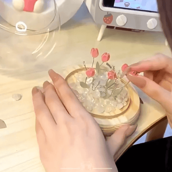 - Elegant Design – Realistic tulip stems inside a polished dome.