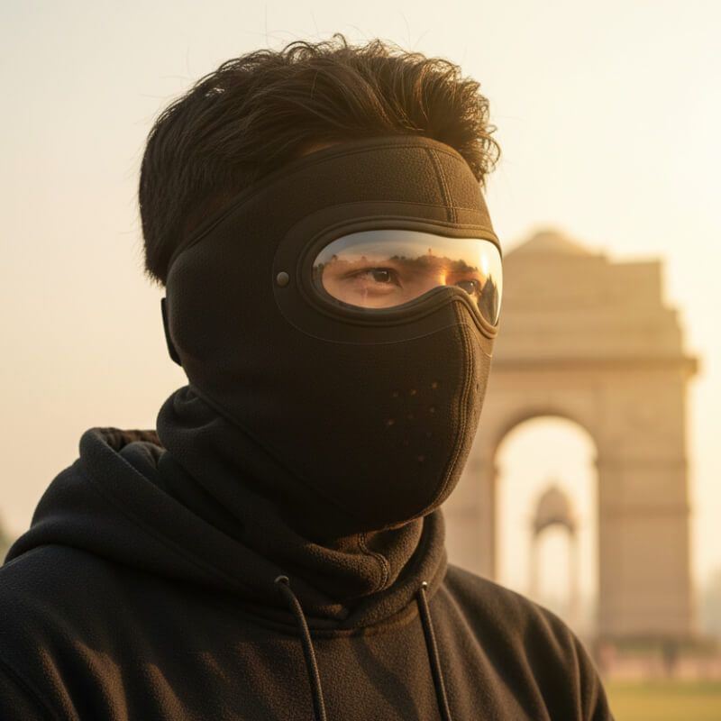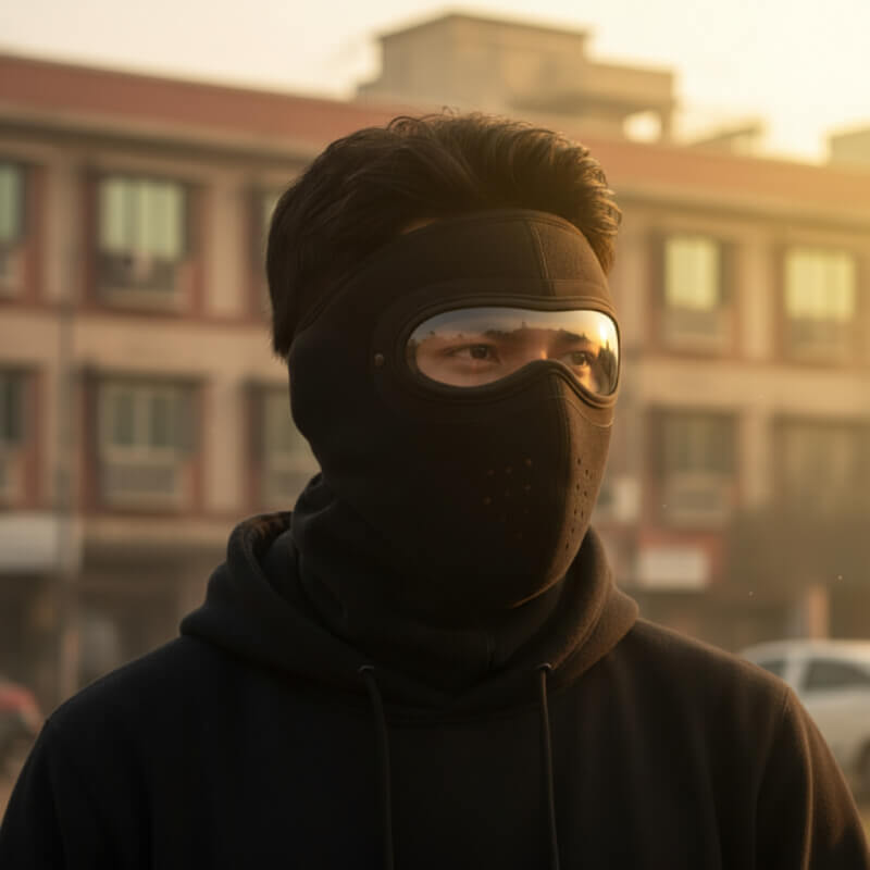Made with ultra-soft thermal fleece and ClearView anti-fog goggles, it shields your face, eyes, and neck during chilly mornings and high-smog days. Perfect for daily riders, commuters, and anyone facing cold + polluted city environments.